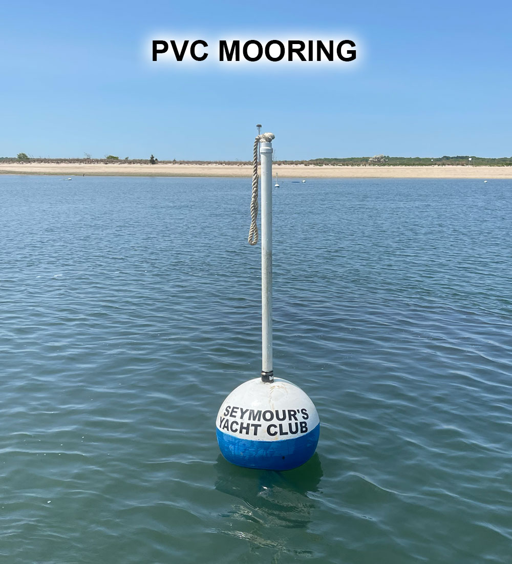 The pvc mooring, also known as the Sand City Mooring, uses a rigid pvc tube to keep mooring lines out of the water.